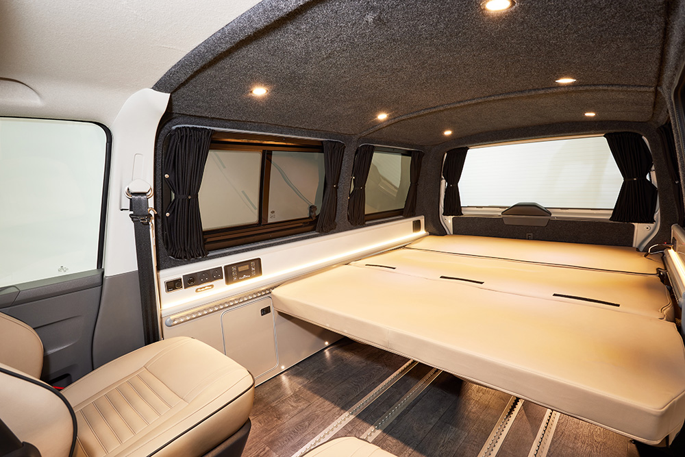 - Available as a two-berth campervan with a Front Runner roof rack system, or as a four-berth campervan with a pop top roof and an elevating platform bed